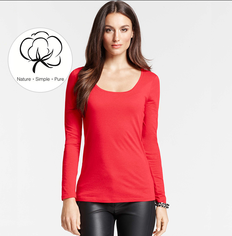 Enerup OEM ODM Deep O Collar Quick Dry Sport Black 100% Cotton Plus Size Long Sleeve Soft Womens T Shirt