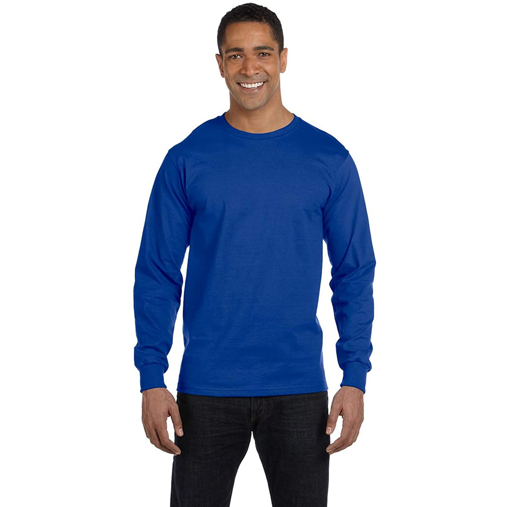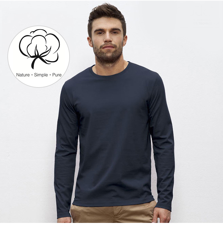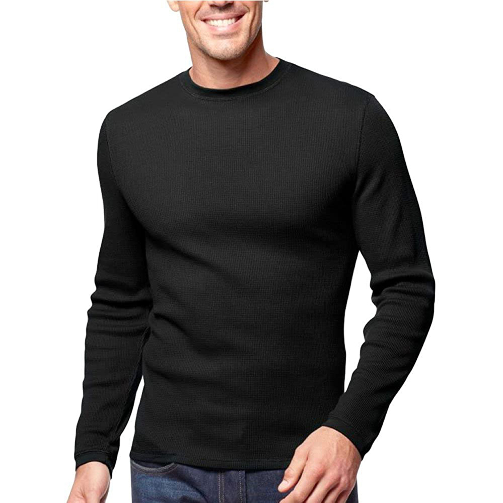 Enerup OEM/ODM Plus Size 100% Cotton Casual Black Male Long John Brand Solid Plain Men Long Sleeve T Shirt